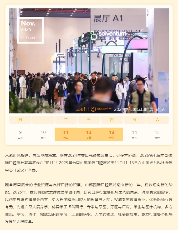 【定档通知】洞悉风向,再启XIN程!2025中部国际口腔展定档“双11”!