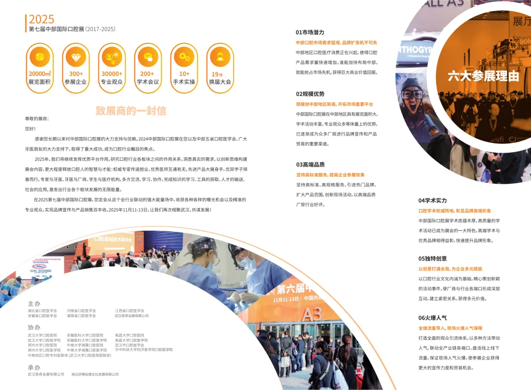 锦绣蓉城,盛情相约。爱牙妹即将抵达口腔人的狂欢派对成都站,新的展会资讯迫不及待与您分享!2025第七届中部国际口腔展亮点纷呈,惊喜众多,我们诚邀全国口腔企业携手合作,也热烈欢迎西部口腔医师共襄盛会。期待11月11-13日在美丽江城武汉与您相聚! 成都·中国西部国际博览城中部国际口腔展展位号:3号馆D96展位